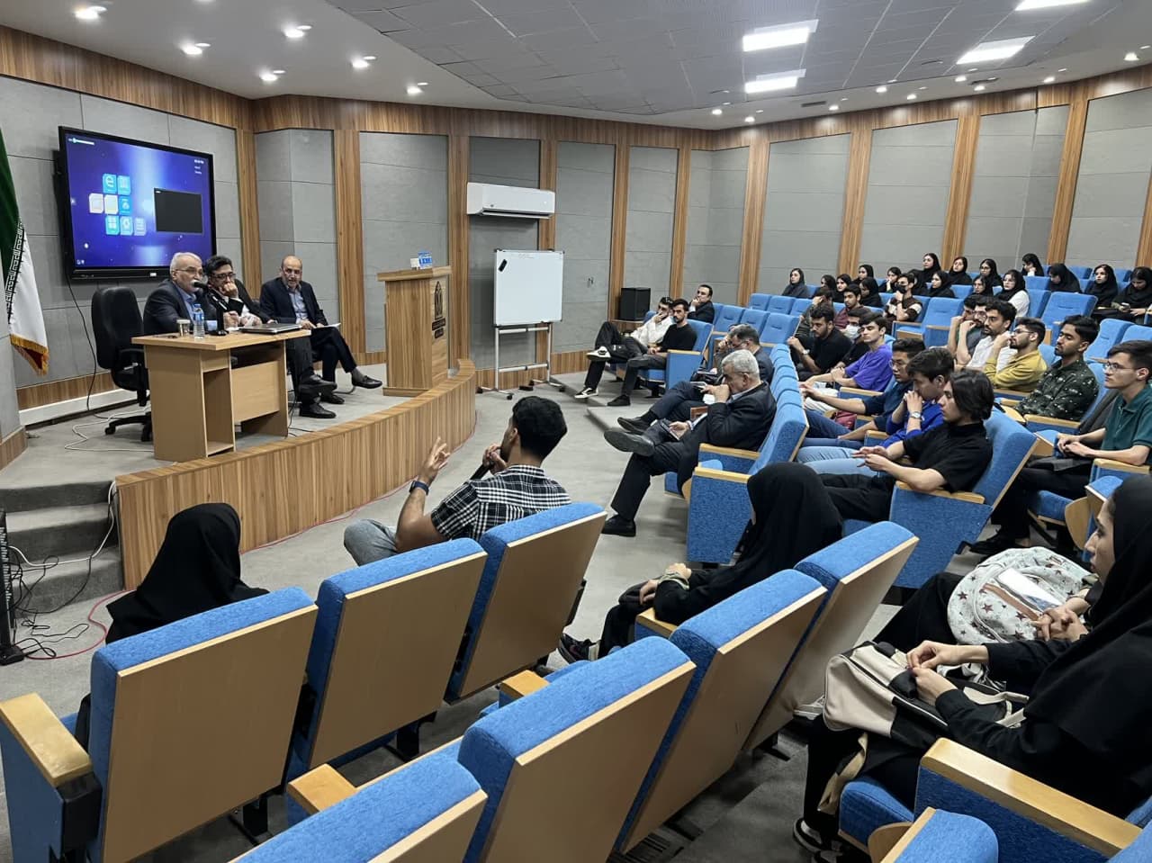 در ادامه این نشست، دانشجویان حاضر در فضایی کاملاً آزادانه و صمیمانه به طرح پرسشها، بیان مشکلات و ارائه دیدگاههای خود پرداختند. مسائل مختلفی از جمله افزایش ظرفیت پذیرش دانشجویان، کمبود فضاهای فیزیکی (کلاسها، خوابگاه، سلف سرویس، آزمایشگاه)، کمبود و فرسودگی تجهیزات آموزشی، آزمایشگاهی و کمک آموزشی، کمبود مواد مصرفی، مسائل مربوط به برگزاری آزمونها و فرصتهای پژوهشی دانشجویان از جمله مهمترین محورهای مطرح شده بود.